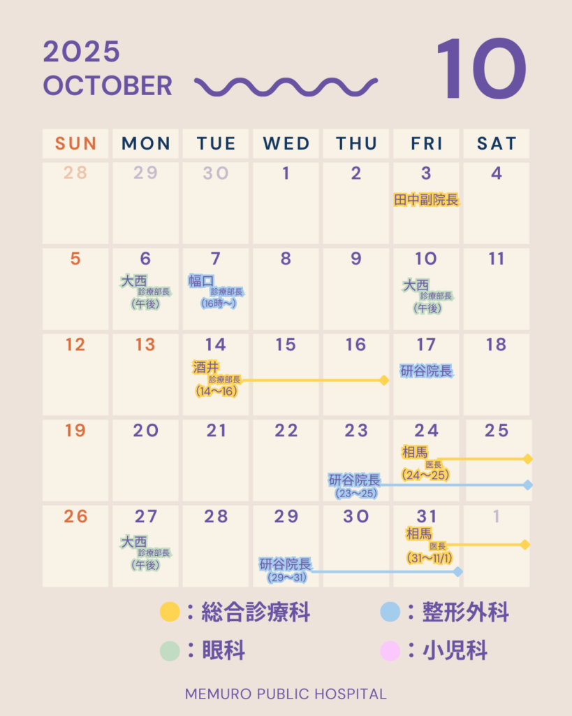 【医師不在日】 ◆研谷院長 ・17日(金) ・23日(木)~25日(土) ・29日(水)~31日(金)