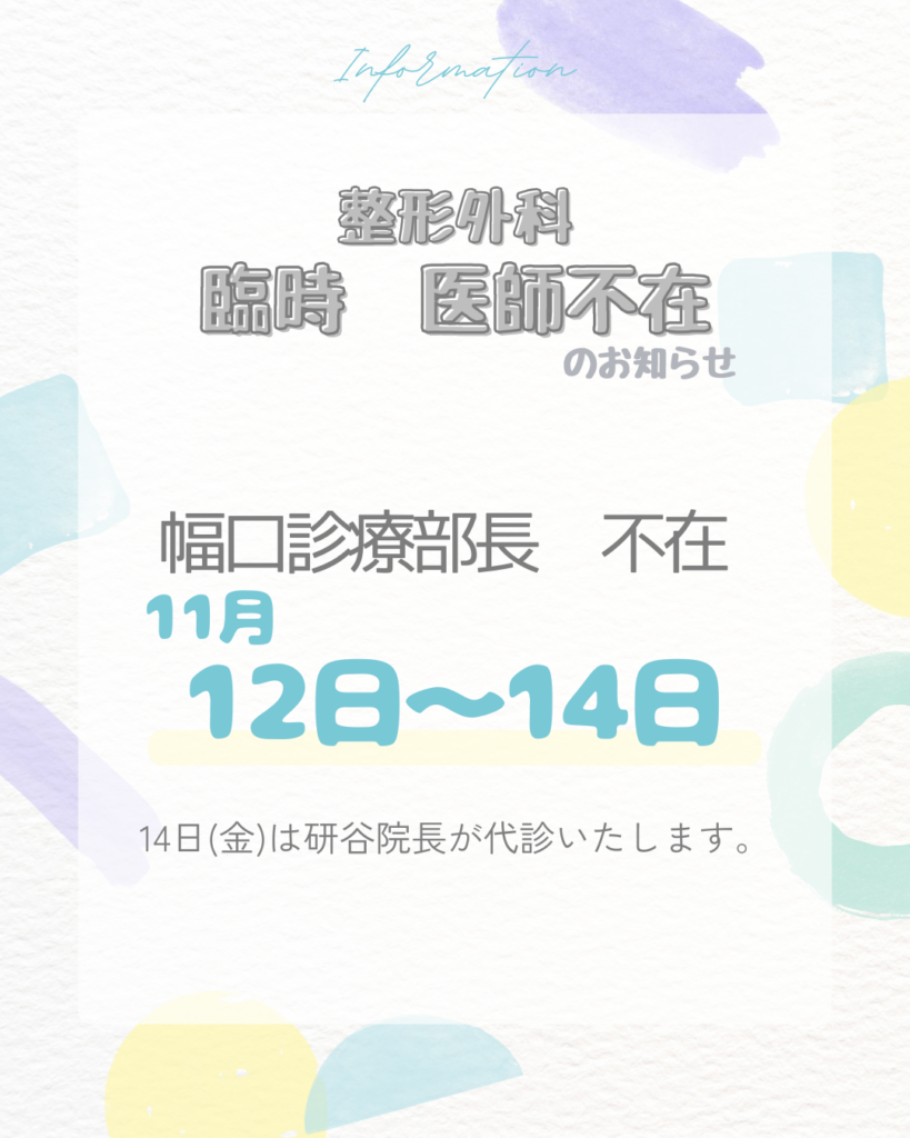 11月12日(水)~14日(金) 幅口診療部長 不在です。